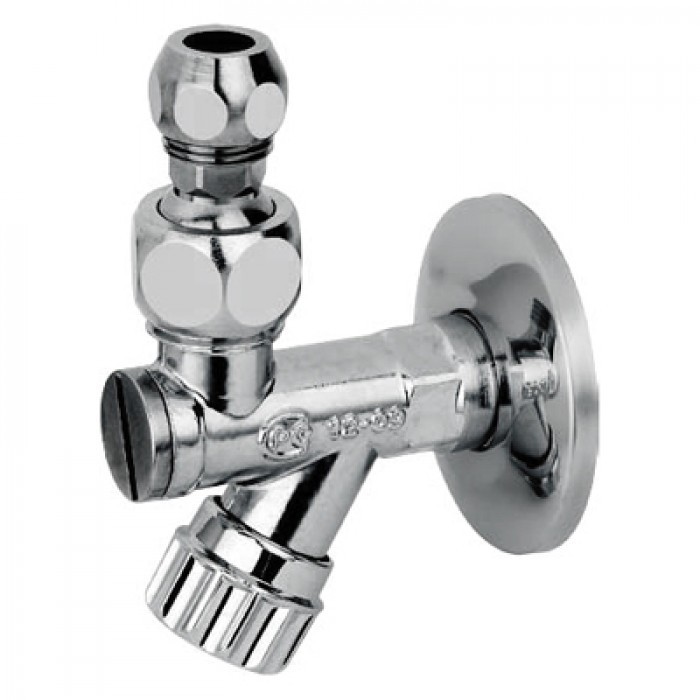 Rubinetto sottolavabo in ottone cromato, con filtro ispezionabile, con filettatura maschio a muro da 1/2, innesto tubo diametro 10 mm. / femmina da 1/2 snodato, completo di rosetta a muro. Confezionato in busta da 1 pz.